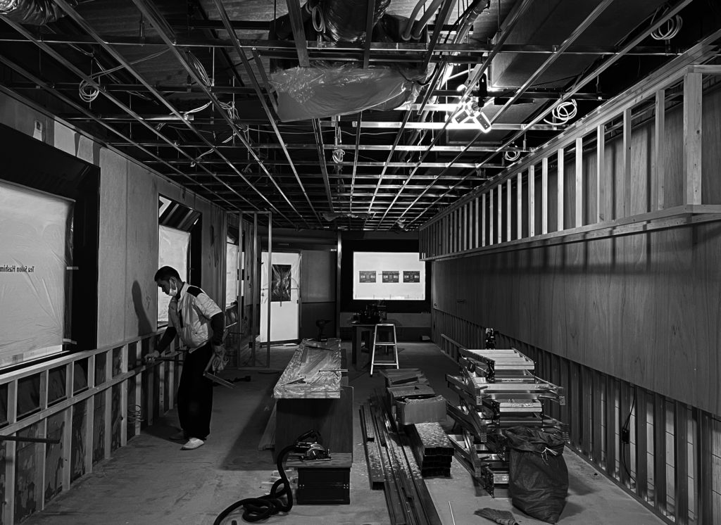 大工さんが入り、カウンターやショーケースの